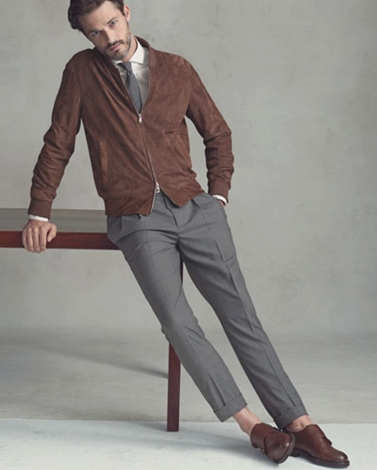 Những kiểu áo khoác biker hoặc bomber từ da/da suede là những lựa chọn phù hợp, và hãy thử một chút biến tấu khi phối kiểu áo khoác bụi bặm này với quần tây/chinos xám. Bất cứ một người đàn ông thực thụ nào cũng phải có ít nhất một chiếc quần tây xám màu trong tủ quần áo. Bởi xám là một sắc màu trung tính đa năng, phối hợp và luân phiên hợp lý với nhiều sắc và phong cách khác nhau (công sở, party, dạo phố, phượt…).