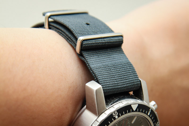 Nhìn từ góc này, các bạn sẽ dễ hình dung hơn về sự liền mạch và chắc chắn của kiểu dây NATO (Hình ảnh: Crown & Buckle)