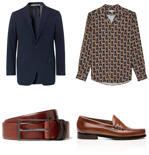 Đối với những buổi họp mặt bạn bè hoặc hẹn hò, bạn có thể diện trang phục smart-casual với suit xanh navy và giày loafers hoặc Derbies màu nâu. Để trở nên thu hút và nổi bật giữa đám đông, bạn nên chọn suit có phom dáng slim-fit. Sau đó, phối cùng với áo sơ mi họa tiết nổi bật giúp bạn trẻ trung, năng động hơn. Nếu bạn muốn đeo một chiếc thắt lưng, hãy đảm bảo màu thắt lưng phải đồng màu với giày da.