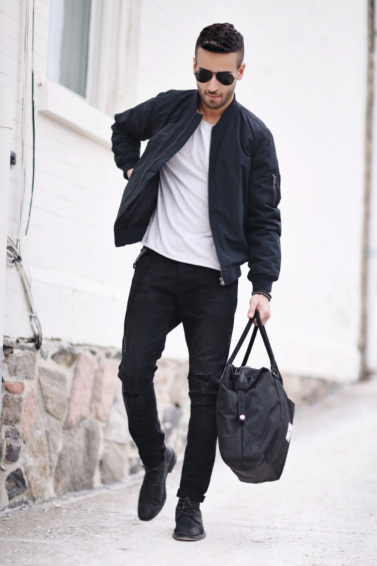 Những chiếc áo khoác bomber luôn mang đến một vẻ nam tính và thời trang cho người mặc. Trong thời tiết lạnh này, các chàng trai có thể chọn áo khoác bomber tone màu trầm như màu đen sáng của than, xanh navy hoặc đơn giản một màu đen trên nền vải trơn. Cotton là chất liệu thích hợp nhất cho áo khoác bomber bởi nó sẽ tạo form cho áo rất đẹp. Nên tránh chọn chất liệu khiến áo trông nặng nề như đính đá, lót đệm, hay áo làm từ chất vải bóng.