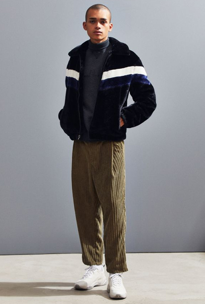 Tương tự như phong cách layer oversize và minimal phía trên, hãy để bản thân kết cầu và bề ngoài đặc trưng chiếc áo khoác fleece đóng vai trò điểm nhấn cho tổng thể bộ trang phục của bạn. Với phong cách thời trang này, những thiết kế bomber có độ dài vừa phải và khá thùng thình sẽ khá hài hòa với form dáng chunky của tổng thể bộ trang phục. Bạn cũng hoàn toàn có thể nổi bật hơn với sự tương phản nhẹ nhàng trên những loại chất liệu với một chiếc quần trouser bằng nhung corduroy hoặc một mẫu giày thể thao bằng da lộn.