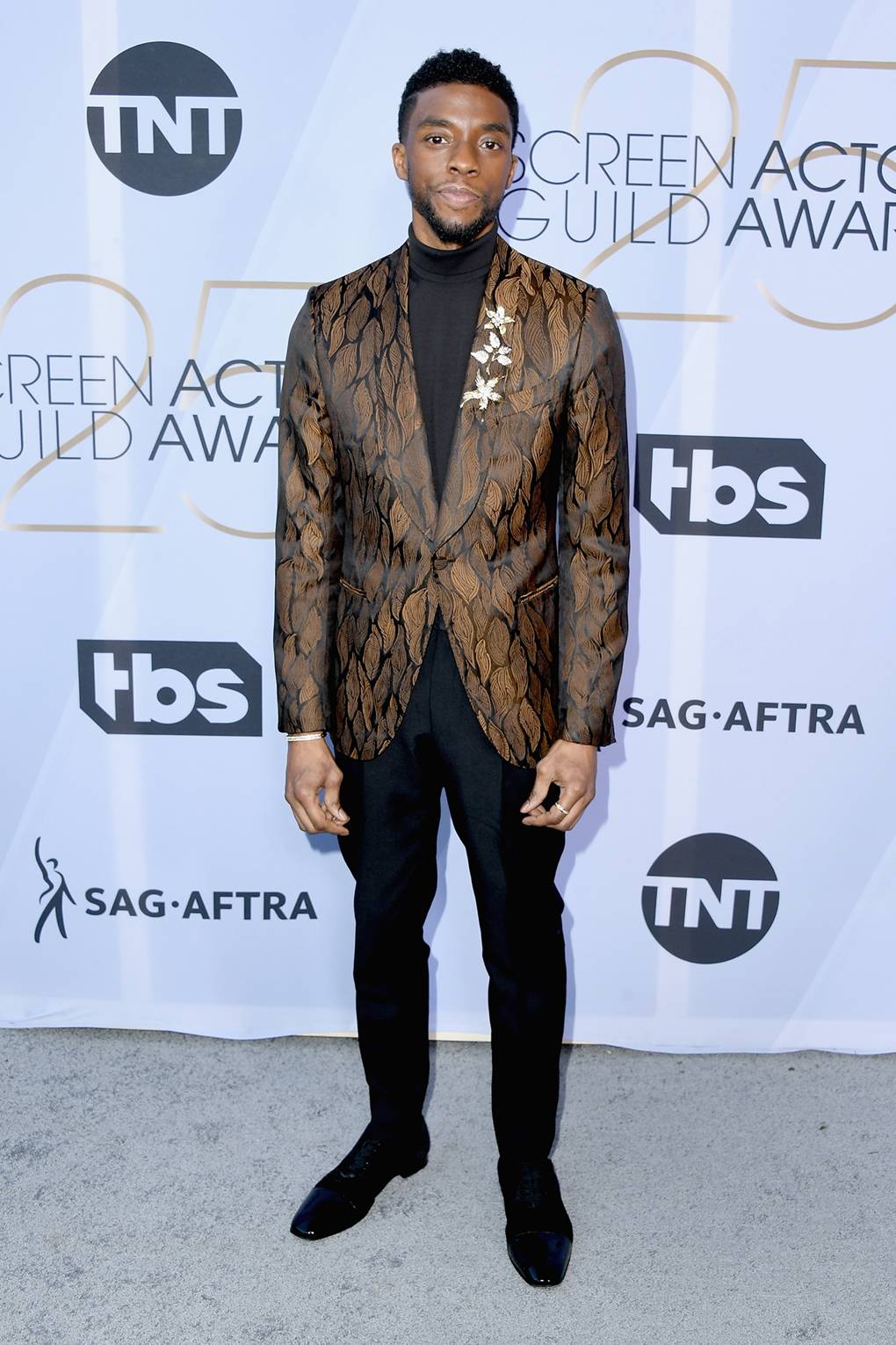 Chadwick Boseman diện trang phục đến từ thương hiệu Ermenegildo Zegna XXX khi tham dự lễ trao giải SAG 2019. Không chỉ có bài phát biểu nhận giải vô cùng ấn tượng mà người ta còn bị thu hút bởi phong cách thời trang anh thể hiện. Chính chiếc áo khoác bold jacket của anh làm nên nét độc đáo ấy, thậm chí một chiếc cà vạt cũng không được phép “dìm” phong cách này xuống.