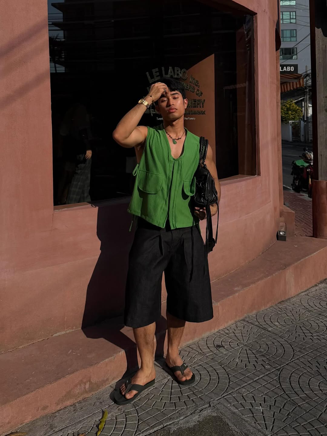 Quần short jeans kết hợp cùng áo sơ mi caro là một trong những công thức đơn giản nhưng luôn hiệu quả cho mùa nóng. Một bên mang tinh thần phóng khoáng, bụi bặm của denim, bên còn lại tạo điểm nhấn nhờ họa tiết kẻ ô kinh điển. Khi đi cùng nhau, tổng thể tạo nên diện mạo trẻ trung, năng động và đậm chất casual nam tính.