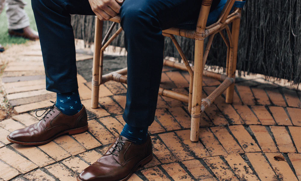 Giày nâu có thể phối với hầu hết mọi màu vớ. Bí quyết là bạn cần phối màu sắc vớ với quần tây một cách tinh tế. Các màu như xanh navy, xám, kaki và ô liu đều trông rất lịch lãm khi phối với giày nâu.