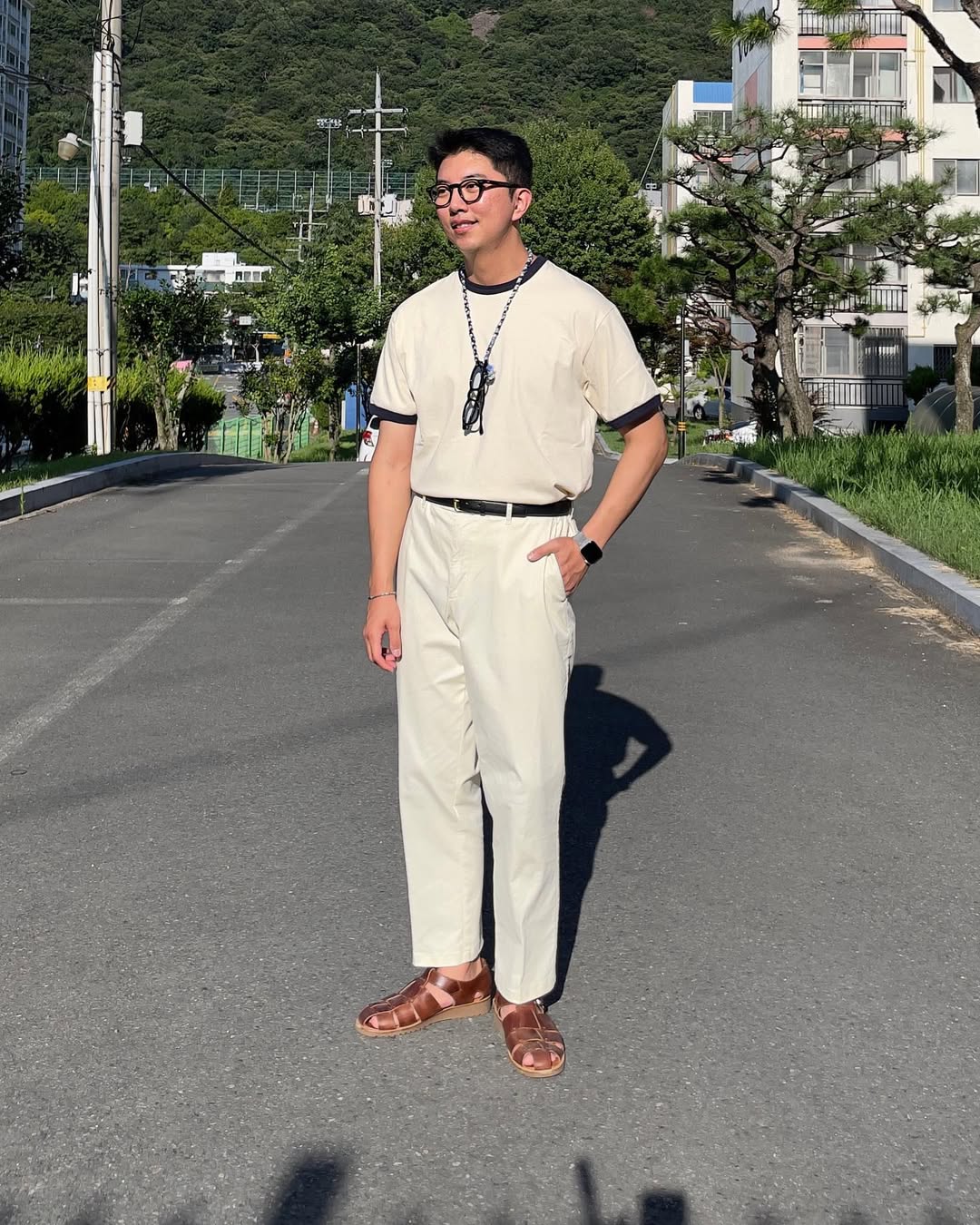 Nếu bạn còn nghi ngờ về tính ứng dụng của sandal, hãy thử kết hợp item này với quần chinos và áo thun. Nó sẽ là outfit đơn giản nhưng vẫn thanh lịch cho những ngày Hè nắng nóng. Sự xuất hiện của đôi sandal sẽ mang đến nét mới mẻ và năng động hơn.