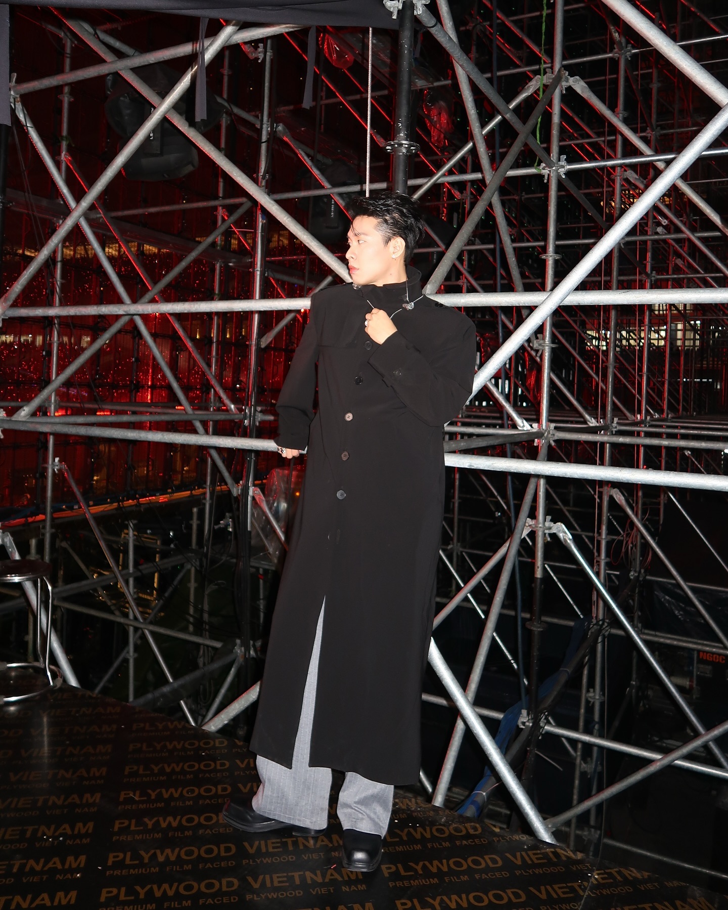 Khi bước lên sân khấu, Low G hoàn toàn lột xác với một diện mạo đầy năng lượng và đậm chất đường phố. Anh không ngại thử nghiệm những trang phục táo bạo, chẳng hạn như nổi bật với bộ đồ ton-sur-ton sắc đỏ rực rỡ, được thiết kế tỉ mỉ với những họa tiết graffiti ấn tượng và đính kết đậm đặc viền đuôi trang phục, thể hiện tinh thần tự do và phóng khoáng của văn hóa đường phố.