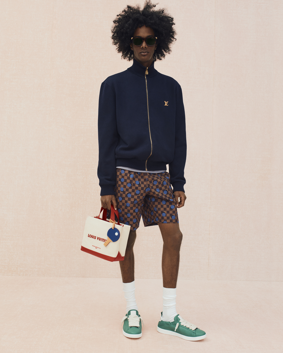 Tinh thần picnic preppy tiếp tục được tái hiện qua túi hình hộp sữa bằng canvas Monogram cổ điển và túi matcha latte bằng da xanh lá. Ở cùng mạch cảm hứng ấy, các món quà tặng gồm vợt paddle và túi đựng bằng Monogram Canvas phối da tự nhiên, cùng một chiếc phao cứu sinh chuẩn bằng Monogram Canvas Jacquard khắc chi tiết di sản. Khép lại phần phụ kiện là Doudou Louis, thú bông biểu tượng của mùa này, khoác chiếc sweater logo yêu thích của Pharrell Williams và trở thành linh vật tinh thần của toàn bộ bộ sưu tập.
