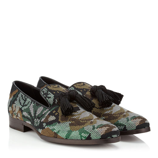 Chẳng hạn như đôi tasseled slipper Foxley có họa tiết pixel pha trộn với Jacquard và lại được phủ thêm một lớp nhung họa tiết floral mang lại một hình ảnh cổ điển, còn đôi slip-on Dunstan làm bằng chất liệu vải tweed được phủ kín bằng các hạt cườm lấp lánh trên bề mặt đem lại một cảm giác hào nhoáng nhưng không sến súa.