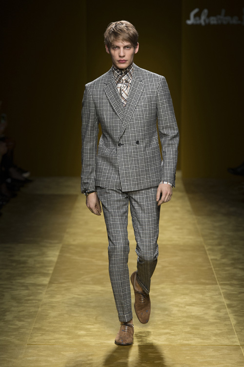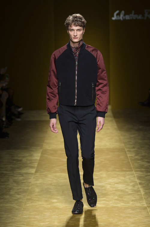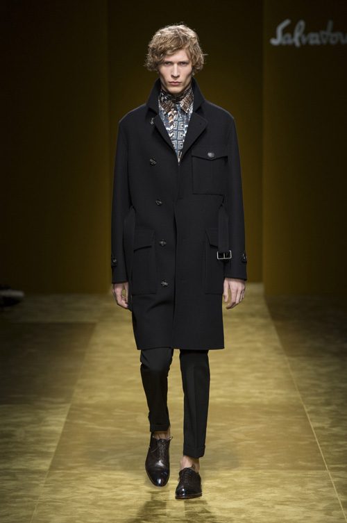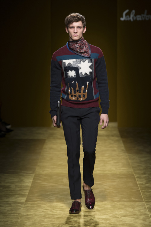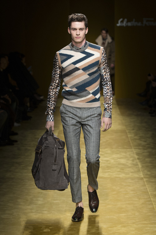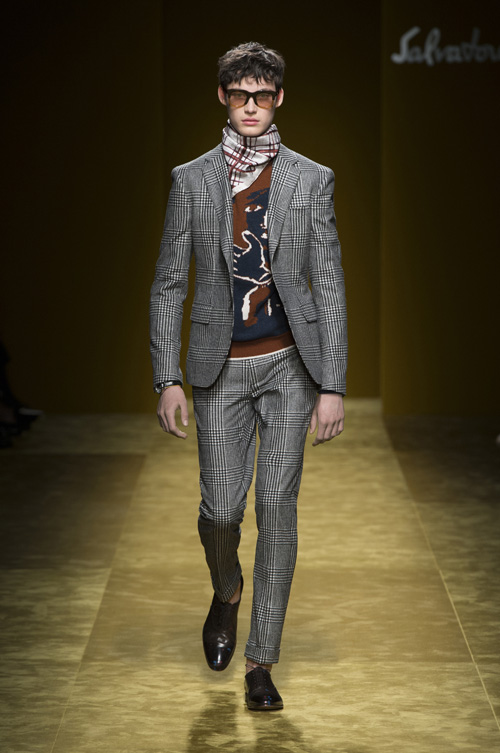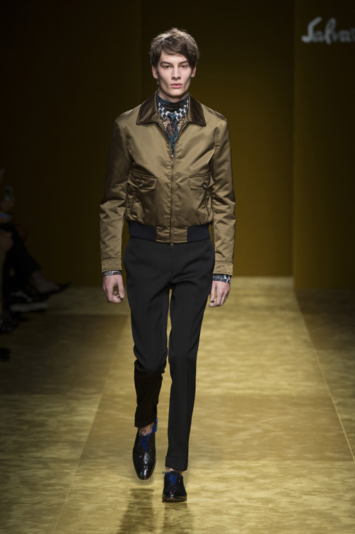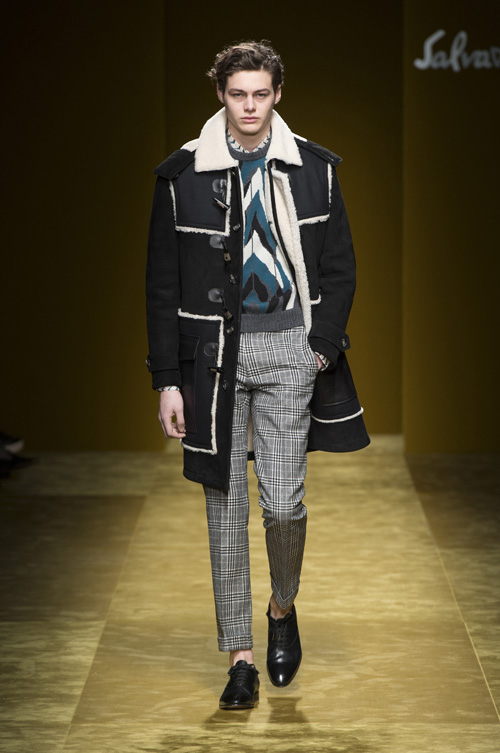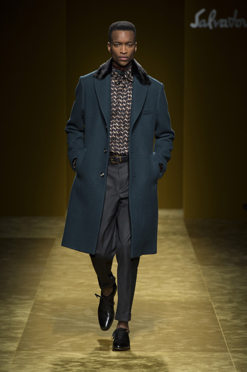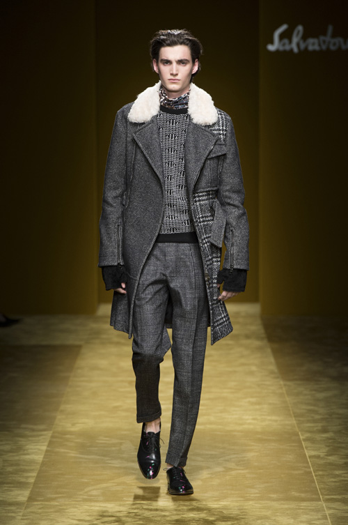 BST Salvatore Ferragamo Thu Đông 2016-17 được tạo nên nhờ những sắc thái đa dạng về màu sắc, họa tiết, bố cục và kiểu dáng trang phục. Bức thông điệp mà Giám đốc Sáng tạo Massimiliano Giornetti muốn truyền tải thể hiện ý niệm về sự xung khắc trong lối dư duy mới và cũ làm nên những quý ông đương đại.