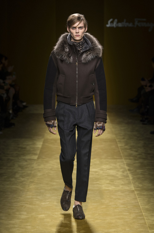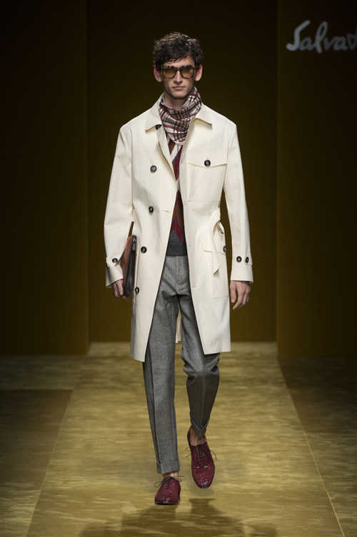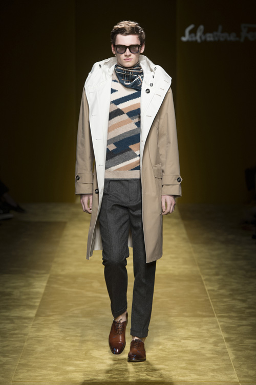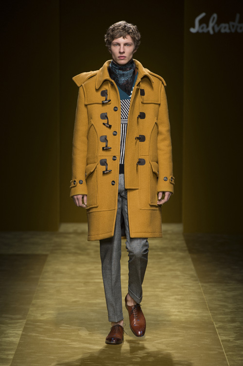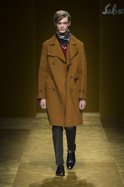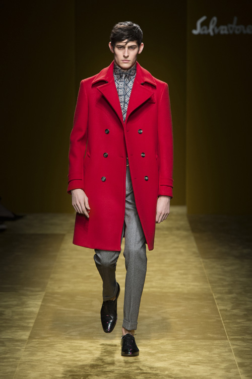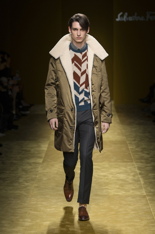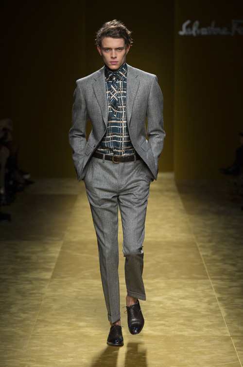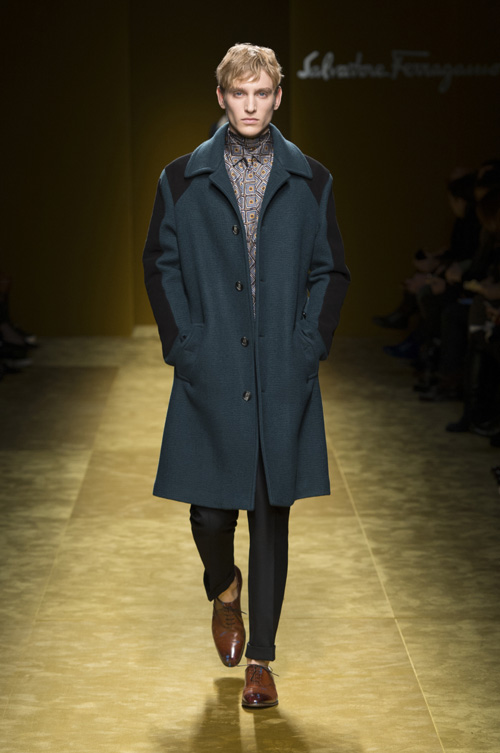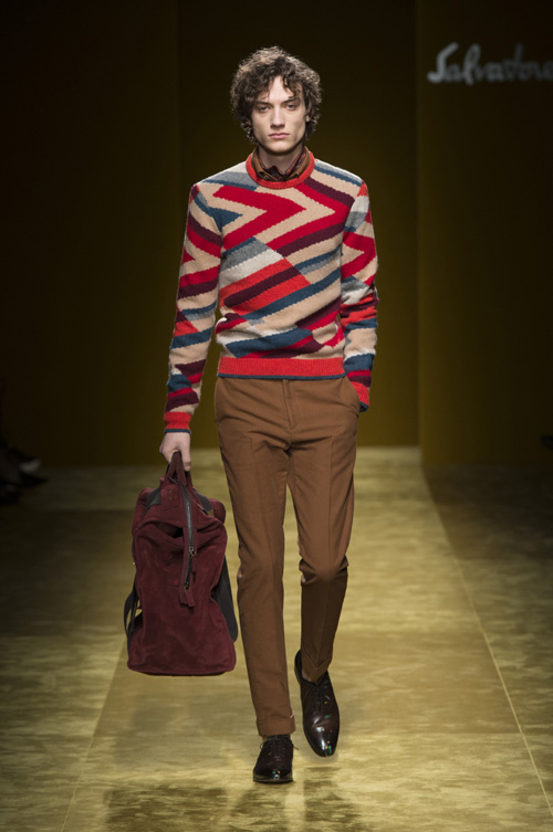 BST Salvatore Ferragamo Thu Đông 2016-17 được tạo nên nhờ những sắc thái đa dạng về màu sắc, họa tiết, bố cục và kiểu dáng trang phục. Bức thông điệp mà Giám đốc Sáng tạo Massimiliano Giornetti muốn truyền tải thể hiện ý niệm về sự xung khắc trong lối dư duy mới và cũ làm nên những quý ông đương đại.