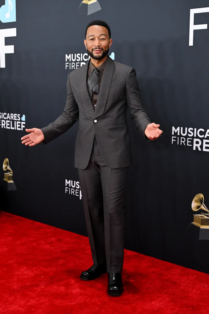 John Legend đã chỉ cho chúng ta cách diện suit của Louis Vuitton với họa tiết ấn tượng nhưng vẫn giữ được nét lịch lãm. Nam ca sĩ đã hoàn thiện oufit cùng chiếc nơ lụa đầy bay bổng và ấn tượng.