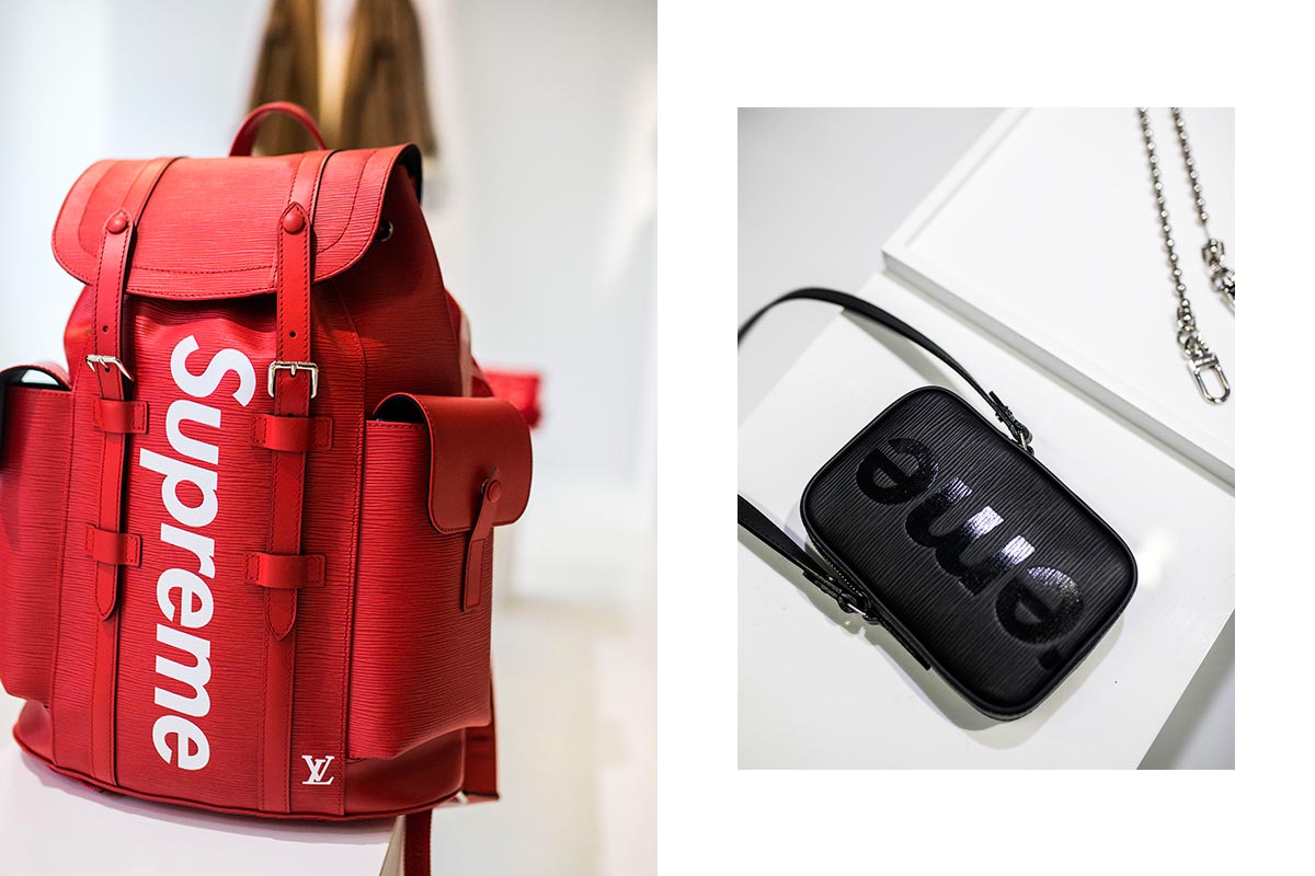 Bắt đầu từ phụ kiện, ta có thể thấy chất liệu da cao cấp LV được thiết kế bắt mắt trên ba lô của Christopher và túi vải thô của Keepall. Móc khoá nhỏ, khăn choàng, găng tay, ví hay ốp Iphone đều có chung đặc điểm nổi bật với chữ viết lồng nhau LV và những item bán chạy nhất của Supreme.