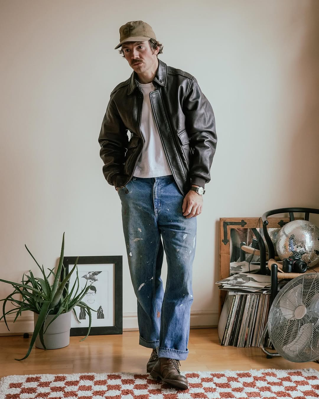Quần jeans, sơ mi flannel và áo khoác workwear