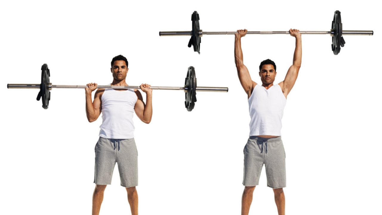 1. Bài tập vai: Barbell Overhead Shoulder Press