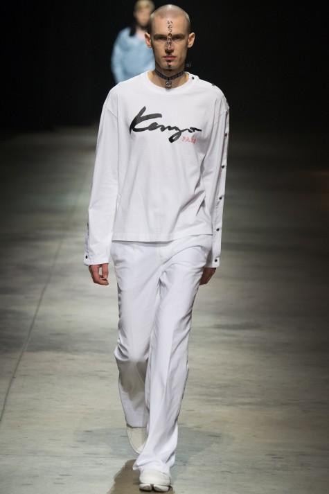 Mạch nguồn sáng tạo nên thiết kế thuộc BST Kenzo Thu Đông 2016-17 là khoảnh khắc tham dự show diễn nhóm nhạc Anh quốc Blur của bộ đôi NTK Carol Lim và Humberto Leon tại Tokyo vào năm 1995. Hai giá trị văn hóa Đông-Tây được bộ đôi NTK Carol Lim và Humberto Leon khéo léo kết hợp dưới điểm nhìn của những con người đương đại. Đó là mẫu quần ống loe kết hợp cùng áo khoác ngoài may phom dáng rộng như áo khoác ngực đúp hoặc trench với đai lưng to bản mang hơi hướng trang phục kimono truyền thống của Nhật Bản.