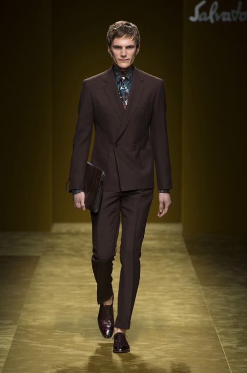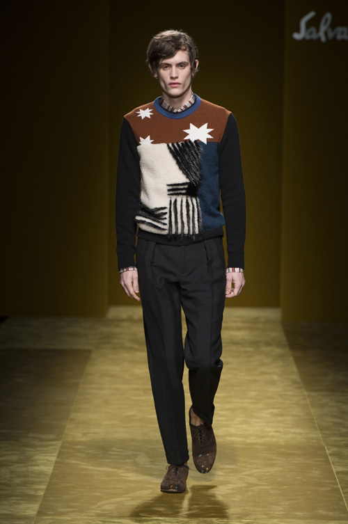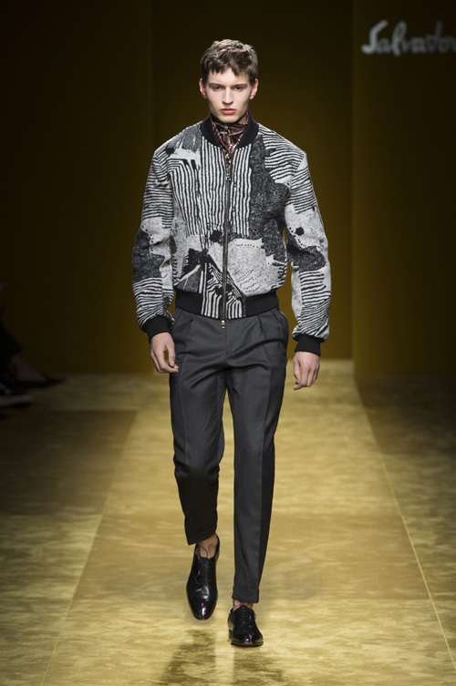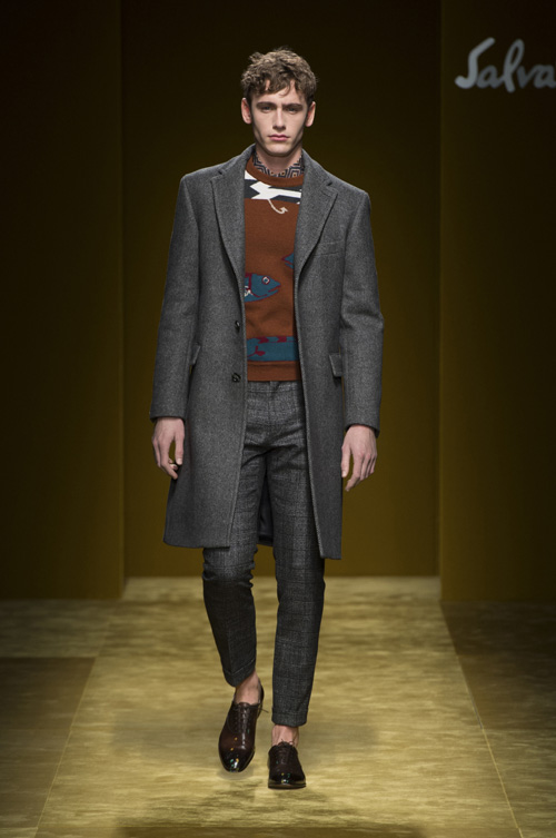 BST Salvatore Ferragamo Thu Đông 2016-17 được tạo nên nhờ những sắc thái đa dạng về màu sắc, họa tiết, bố cục và kiểu dáng trang phục. Bức thông điệp mà Giám đốc Sáng tạo Massimiliano Giornetti muốn truyền tải thể hiện ý niệm về sự xung khắc trong lối dư duy mới và cũ làm nên những quý ông đương đại.