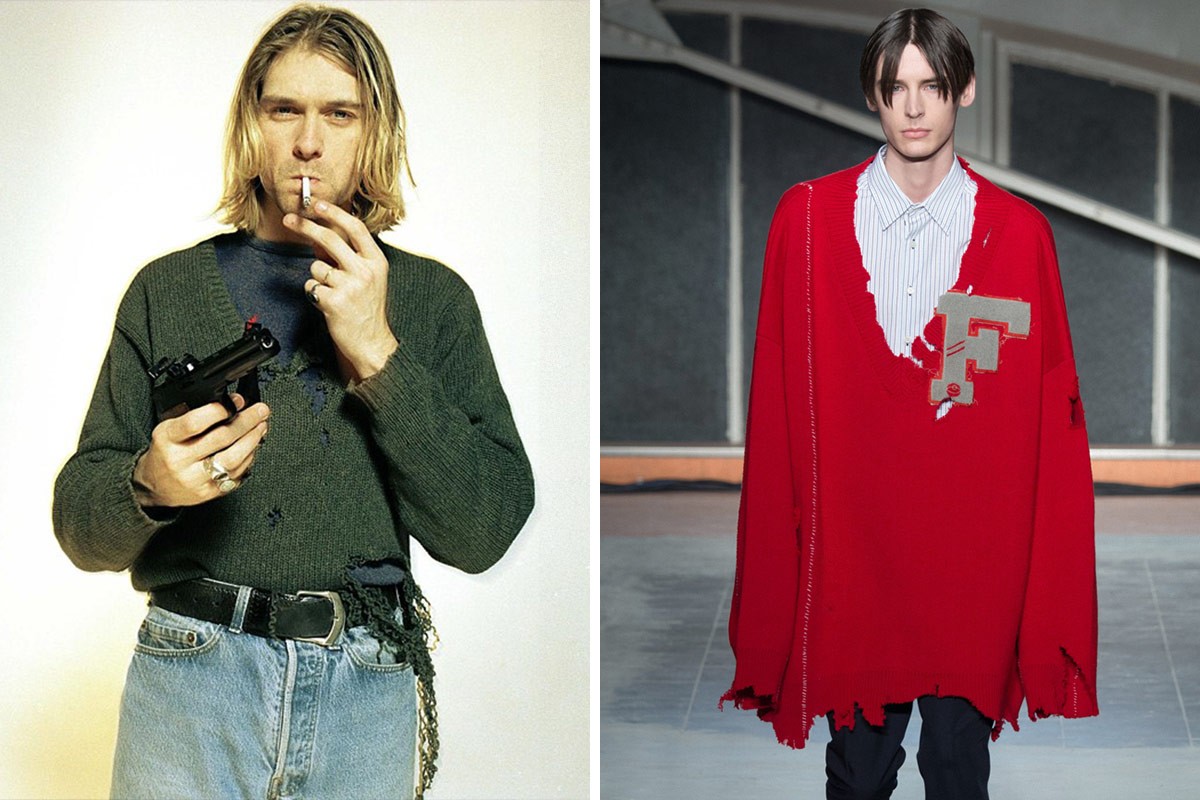 Ai mà biết được rằng sở thích ăn mặc quái gỡ với những áo len “cái bang” rách rưới của Kurt Cobain thuở nào lại thành một xu hướng thời trang đang càn quét khắp nơi hiện nay cơ chứ? Ngôi sao nhạc Rock quá cố này đã luôn yêu thích và thường xuyên mặc những chiếc áo len độc đáo này. Và đương nhiên không thể không nhắc đến người đã lăng xê xu hướng này vào dòng thời trang cao cấp – Martin Margiela.