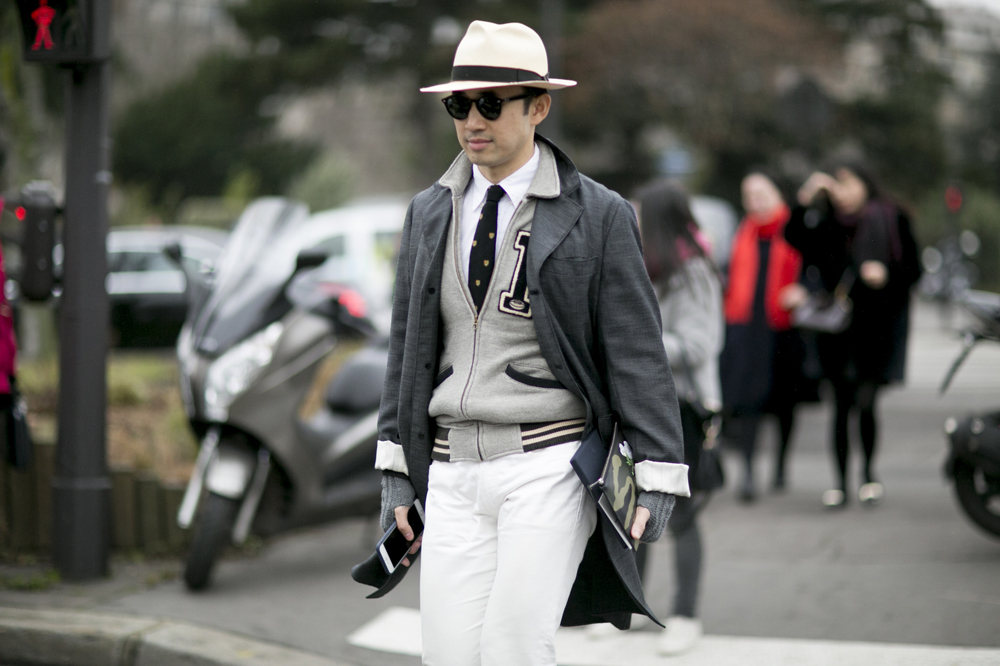Một chiếc bomber kiểu đồng phục sẽ rất phù hợp với sơmi, quần chinos và giày loafer. Đây là phong cách trẻ trung mang đậm tinh thần học đường.