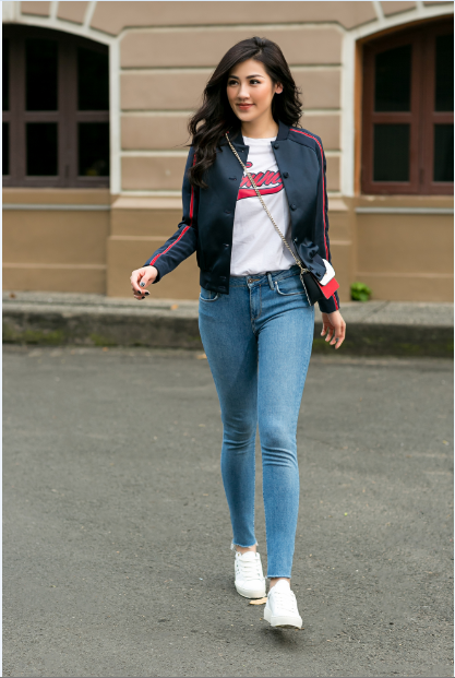 Vẫn giữ nguyên đặc điểm của thương hiệu, sự kết hợp màu sắc trắng, đỏ, xanh mang tới sự nổi bật, phá cách và ấn tượng dành cho người mặc. Chúng ta sẽ cùng chiêm ngưỡng những bộ trang phục được Thiên Minh và Á Hậu Tú Anh thể hiện trong bộ sưu tập mới của thương hiệu Tommy Hilfiger.