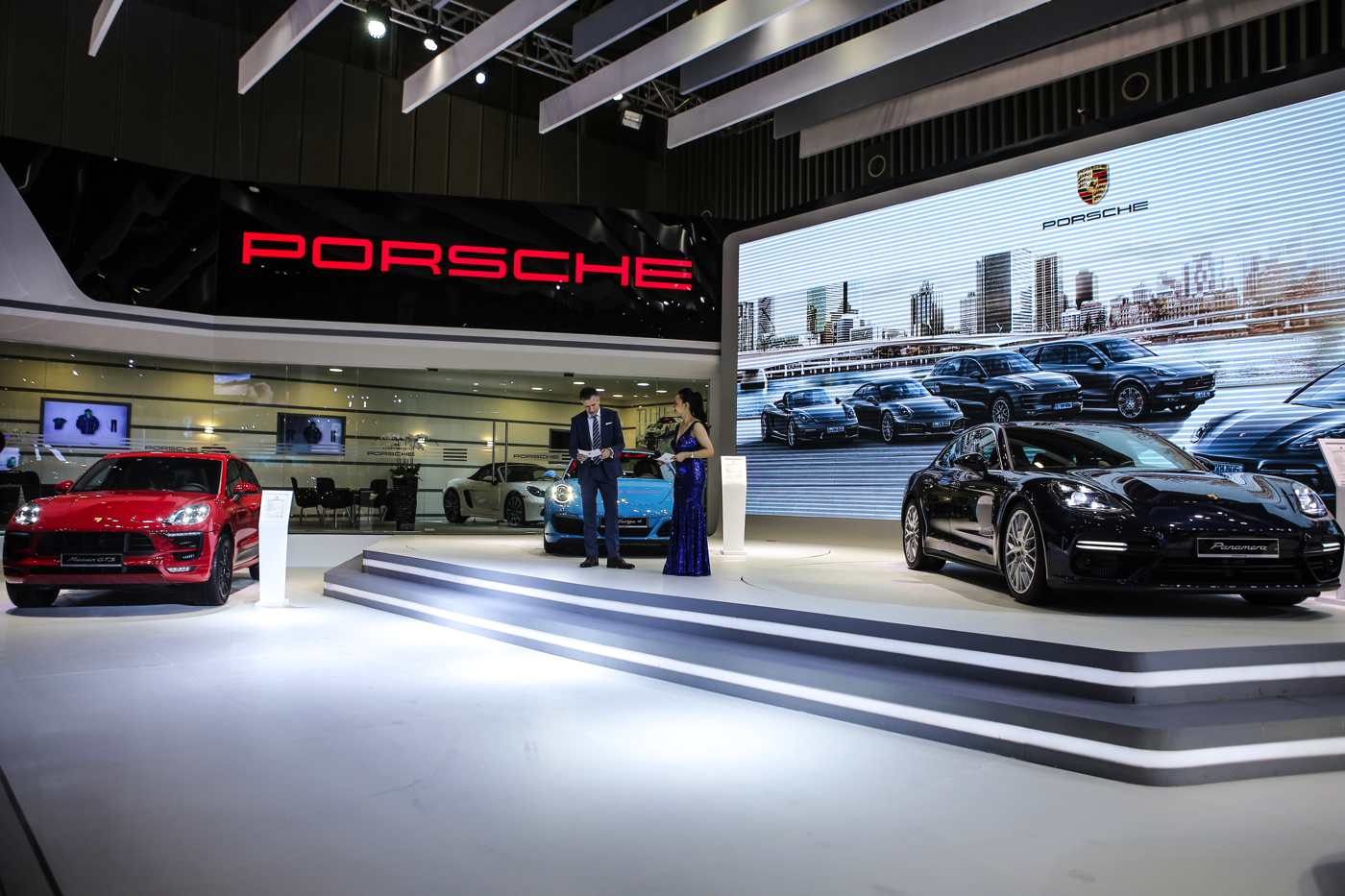 PORSCHE: Tại triển lãm lần này, Porsche mang đến một không gian hiện đại và đậm chất thể thao nhưng vẫn nhấn mạnh giá trị đặc trưng không thể nhầm lẫn của thương hiệu xe thể thao cao cấp với những mẫu xe ấn tượng như: Panamera Turbo, dòng xe Gran Turismo thế hệ mới với hiệu suất ưu việt ẩn sau dáng vẻ lịch lãm, 911 Carrera, biểu tượng của thương hiệu Porsche, 911 Targa mới được trang bị những tính năng đậm chất thể thao và tiện nghi hơn, 718 Boxster, thế hệ xe roadster động cơ đặt giữa hoàn toàn mới, Macan GTS: mẫu xe đầu tiên trong phân khúc xe thể thao đa dụng cỡ trung, Cayenne V6: ngoại hình mạnh mẽ, góc cạnh, tính năng tiêu chuẩn toàn diện hơn. Porsche Việt Nam phát triển vững chắc từ năm 2007 với các trung tâm được đánh giá là một trong những chuẩn mực của ngành công nghiệp ô tô. Công ty TNHH Xe Hơi Thể Thao Uy Tín là nhà Phân phối chính thức của Porsche tại Việt Nam với 2 trung tâm tại thành phố Hồ Chí Minh và Hà Nội.