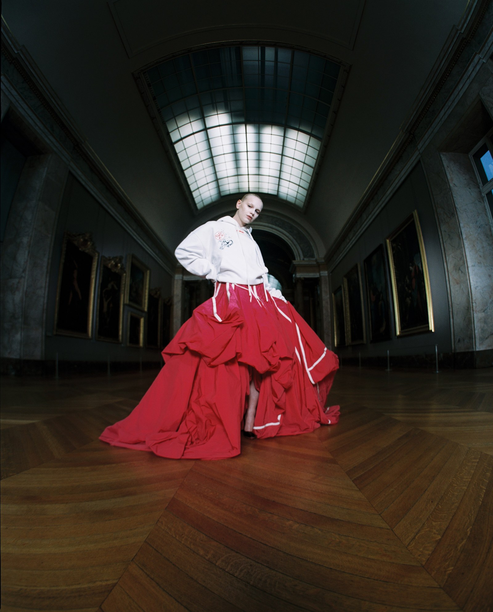 Tháng 10 vừa qua, tổ chức bảo tồn văn hóa Italia Nostra đã ngăn Bảo tàng Louvre trưng bày bức vẽ mang tính biểu tượng của đại danh họa Leonardo da Vinci – Người Vitruvian tại triển lãm tôn vinh da Vinci tại Louvre. Sau đó, tòa đã tuyên bố cho phép kiệt tác “quý giá và mỏng manh” này được vận chuyển từ Ý đến Paris nhằm phục vụ cho triển lãm. Để kỷ niệm cho sự kiện trưng bày đánh dấu 500 năm ngày mất của da Vinci tại Pháp, Off-White đã kết hợp cùng Bảo tàng Louvre cho ra đời bộ sưu tập vinh danh cuộc đời và những tác phẩm của thiên tài hội họa.