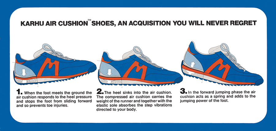 Kiên định cùng truyền thống luôn dẫn đầu phát triển những công nghệ mới; vào năm 1970, thương hiệu của những chú gấu nhận bằng sáng chế cùng phát minh hệ thống “Air Cushion” (tạm dịch: Đệm khí) cho loại giày chạy của họ. Nhờ phát minh này, Karhu ngay lập tức trở thành lựa chọn hàng đầu cho các vận động viên trên toàn thế giới; cũng như tẩu tán được hơn một triệu đôi trên toàn cầu.