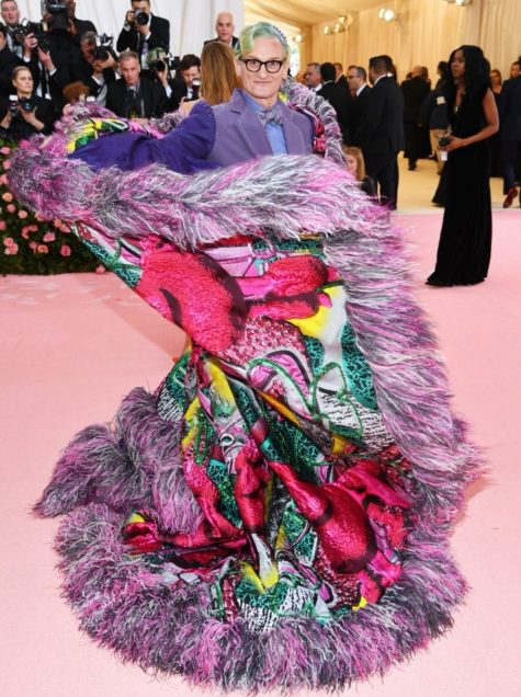 Như chính câu nói nổi tiếng của mình: “Chúng ta sinh ra đều trần trụi, phần còn lại đều là drag“, drag queen, MC, diễn viên, ca sĩ Rupaul đã chọn xuất hiện tại thảm hồng Met Gala trông một bộ suit họa tiết ngựa vằn, với phối màu đen, hồng và xanh, với phần cầu vai được đính chiếc đầu ngựa vằn đầy phá cách, đậm chất Camp.