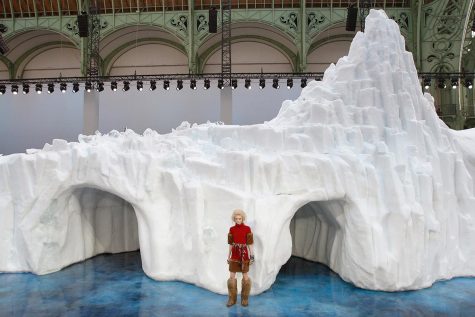 Với hiện tượng nóng lên toàn cầu do biến đổi khí hậu, cố thiết kế gia đã đem đến sàn diễn một…tảng băng thật khổng lồ. Tảng băng này được điêu khắc bởi 35 nghệ nhân trên toàn thế giới chỉ trong 6 ngày, với chiều cao 9 mét cùng khối lượng lên đến 265 tấn, được nhập từ vùng Scandinavia ở Bắc Âu. Mặc dù nhiệt độ của khu triển lãm The Grand Palasis xuyên suốt buổi diễn chỉ ở mức âm 4 độ C, tuy nhiên, chắc chắn tất cả những ai có mặt hôm đó đều cảm thấy rạo rực trong lòng khi được tận mắt chứng kiến một trong những khoảnh khắc lịch sử của thế giới thời trang.